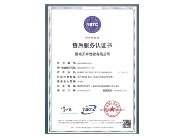 五星級售后服務認證證書
