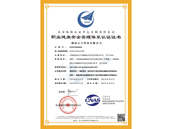 職業健康安全管理體系認證證書