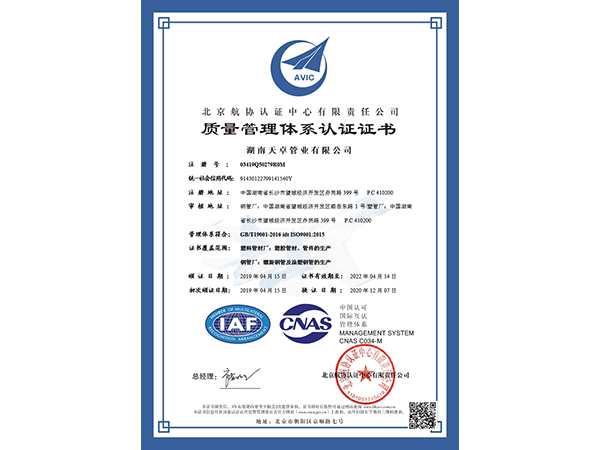 質量管理體系認證證書